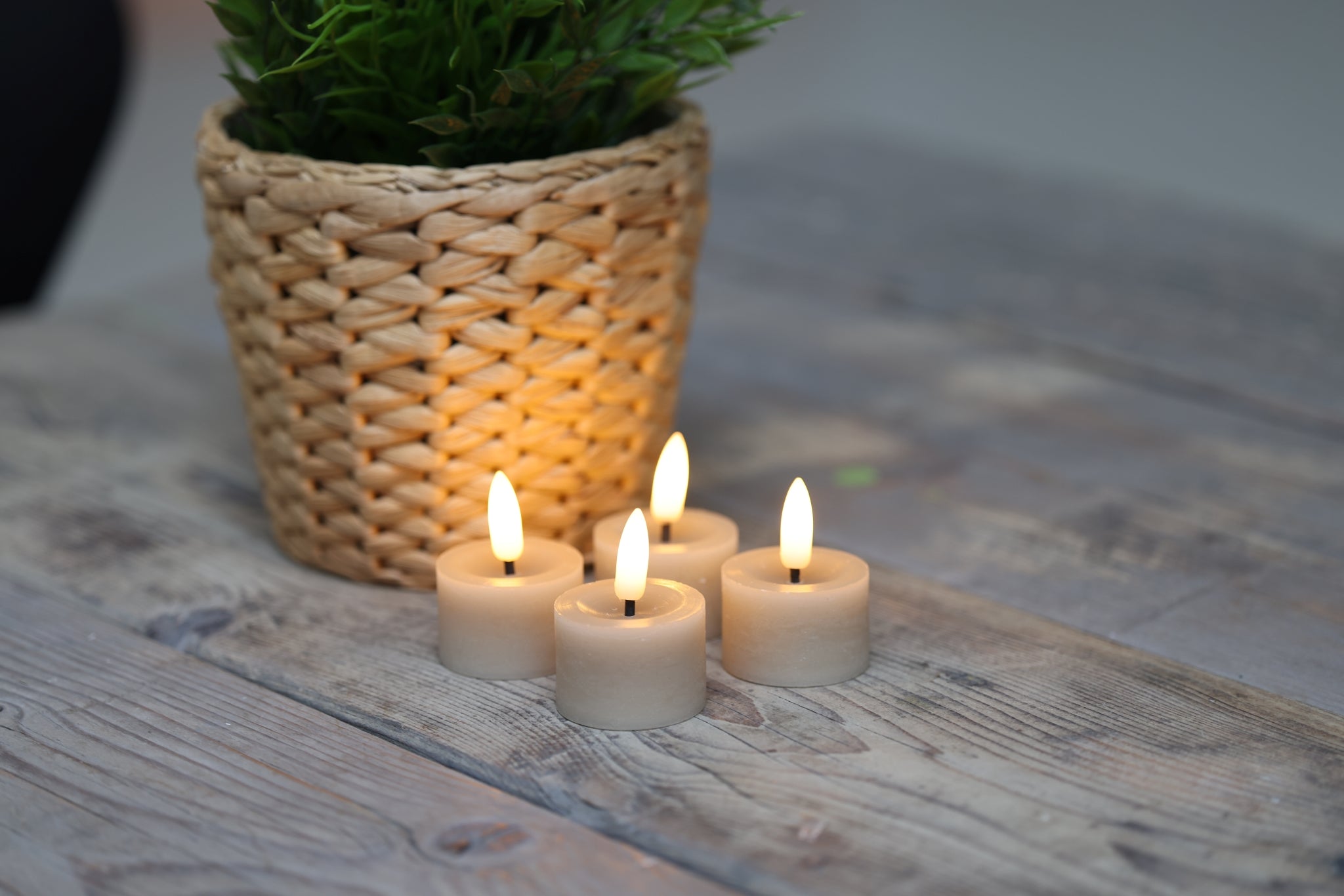 Skaber et varmt og naturligt lys, som giver samme stemning som ægte stearinlys – bare uden besvær med tænding, dryp eller udskiftning.