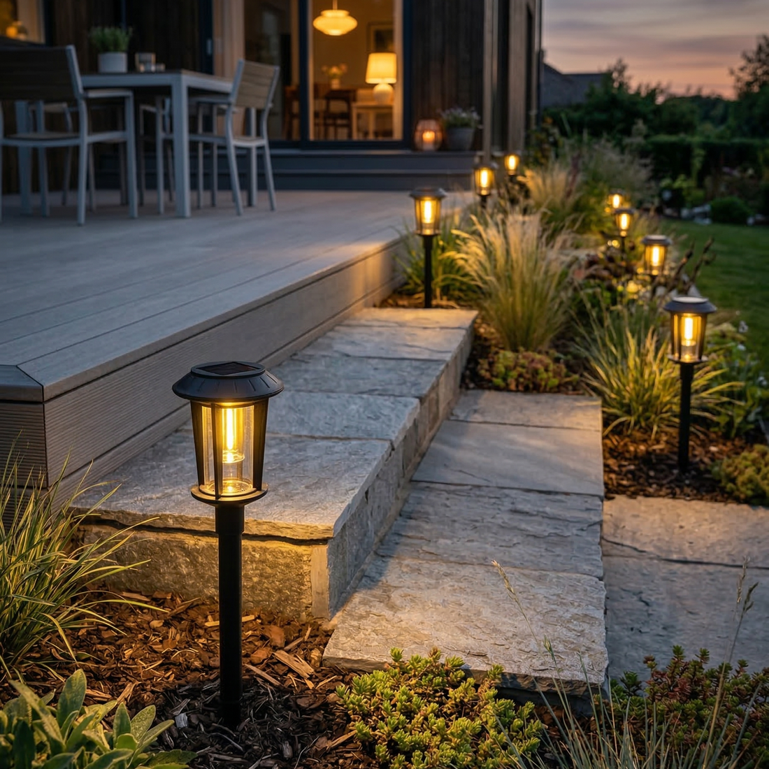 Skab hyggelig stemning udendørs med vores stilrene solcelle lampelys.De oplades automatisk i løbet af dagen...