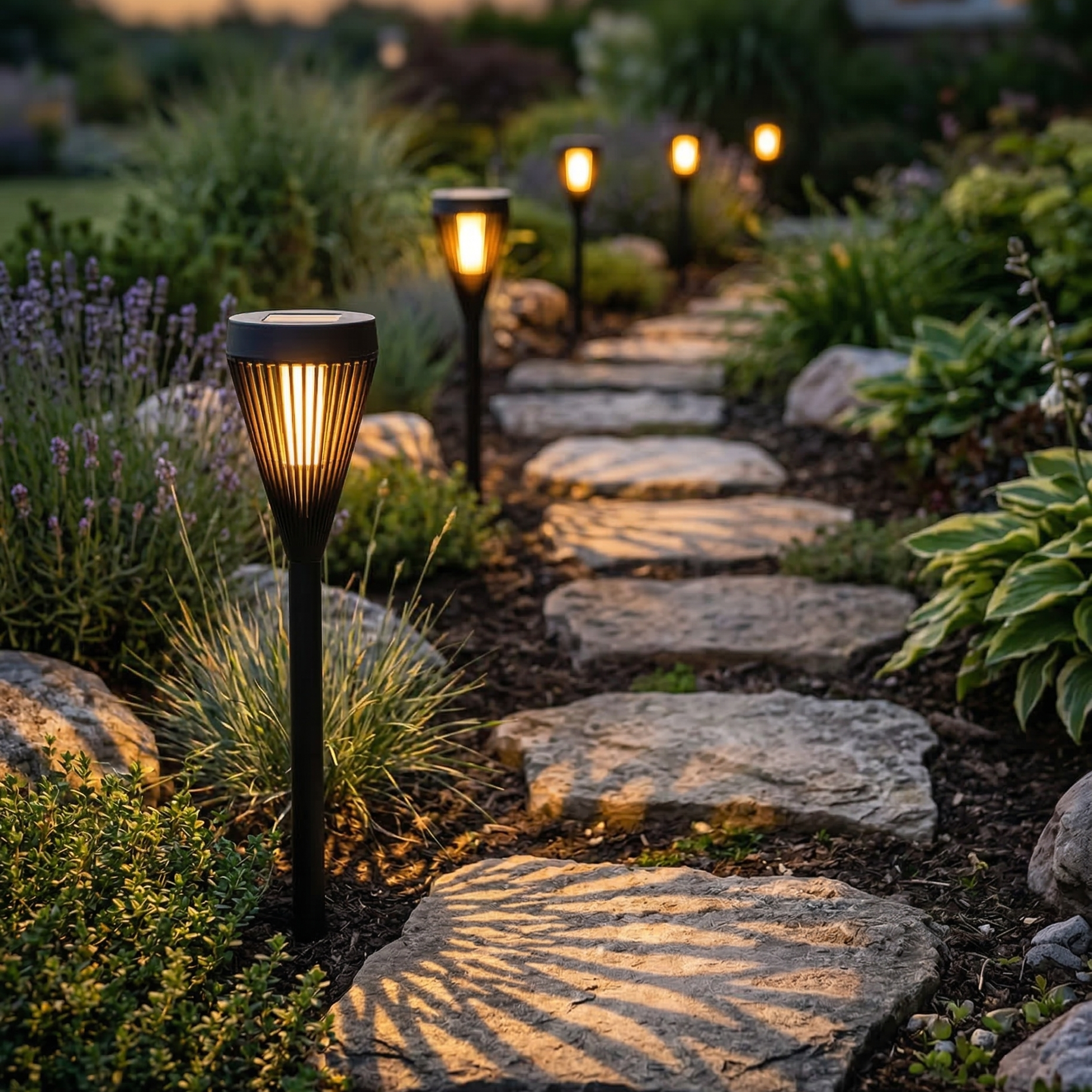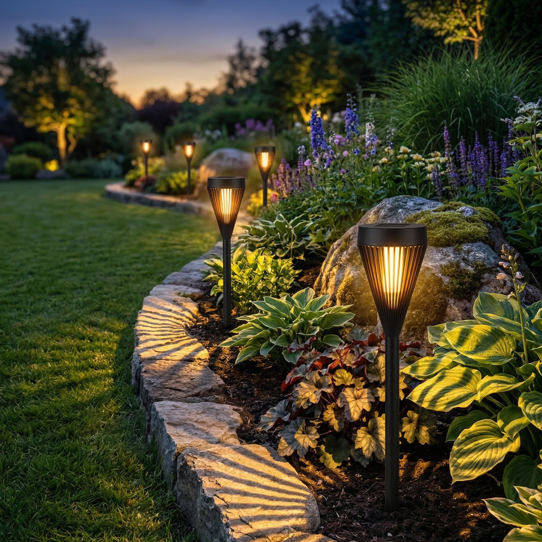 Faklerne er perfekte til brug langs havestier, i blomsterbede, ved terrassen eller i indkørslen. De er nemme at installere – stik dem blot i jorden, så klarer solcellen resten.