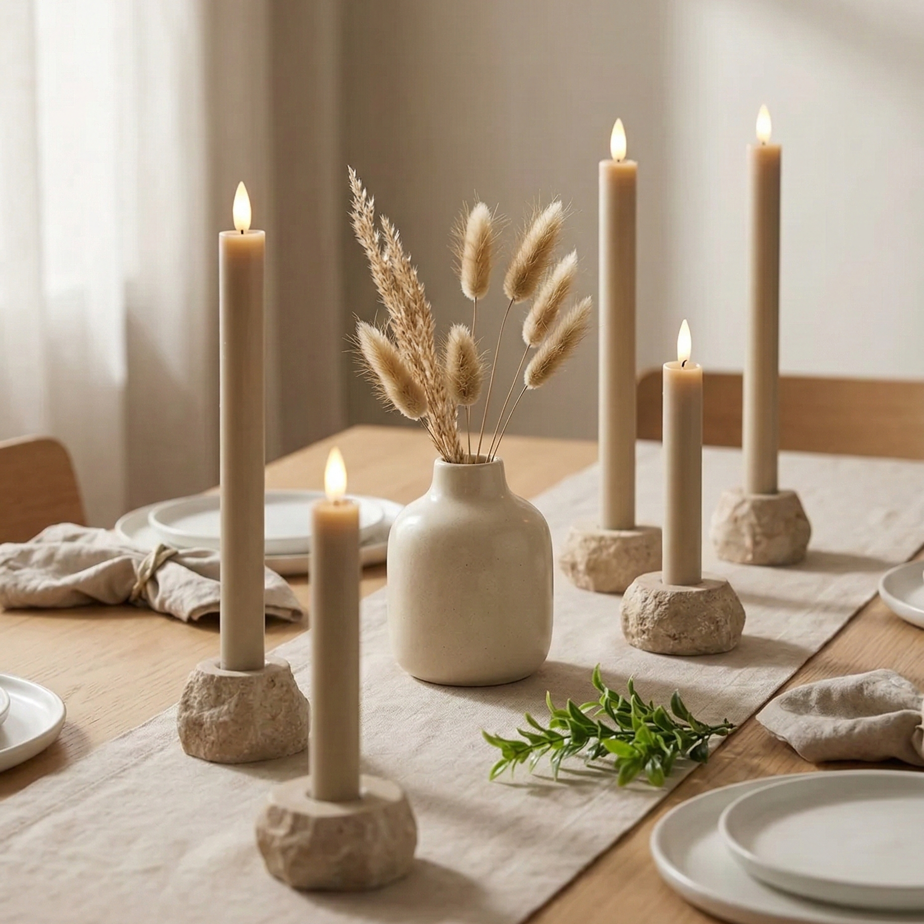 De naturtro, flakkende flammer giver et varmt og roligt skær, der minder om ægte stearinlys – helt uden røg, sod eller brandfare. Perfekt til spisebordet, vindueskarmen, små stager eller som en smuk del af din borddekoration.
